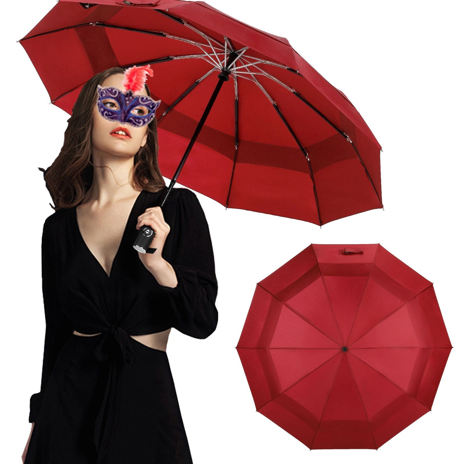 Umbrella Windproof Travel Umbrella, Compact Umbrella Vented Double Canopy Auto Open Close 10 ribs - Burgundy