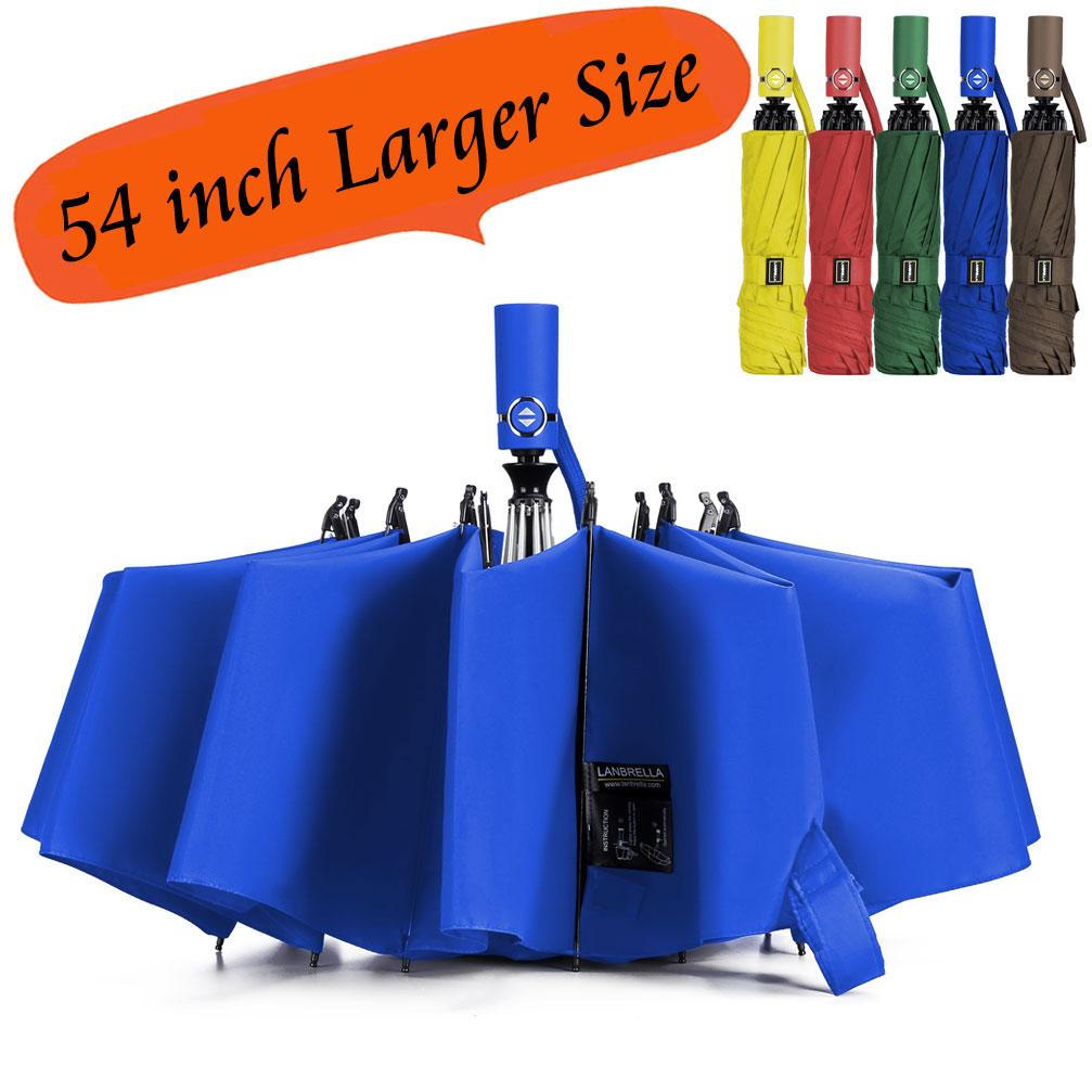 Umbrella Large Inverted Folding Umbrellas Windproof Compact Folding Auto open close 10 ribs - Blue