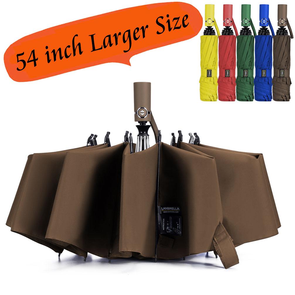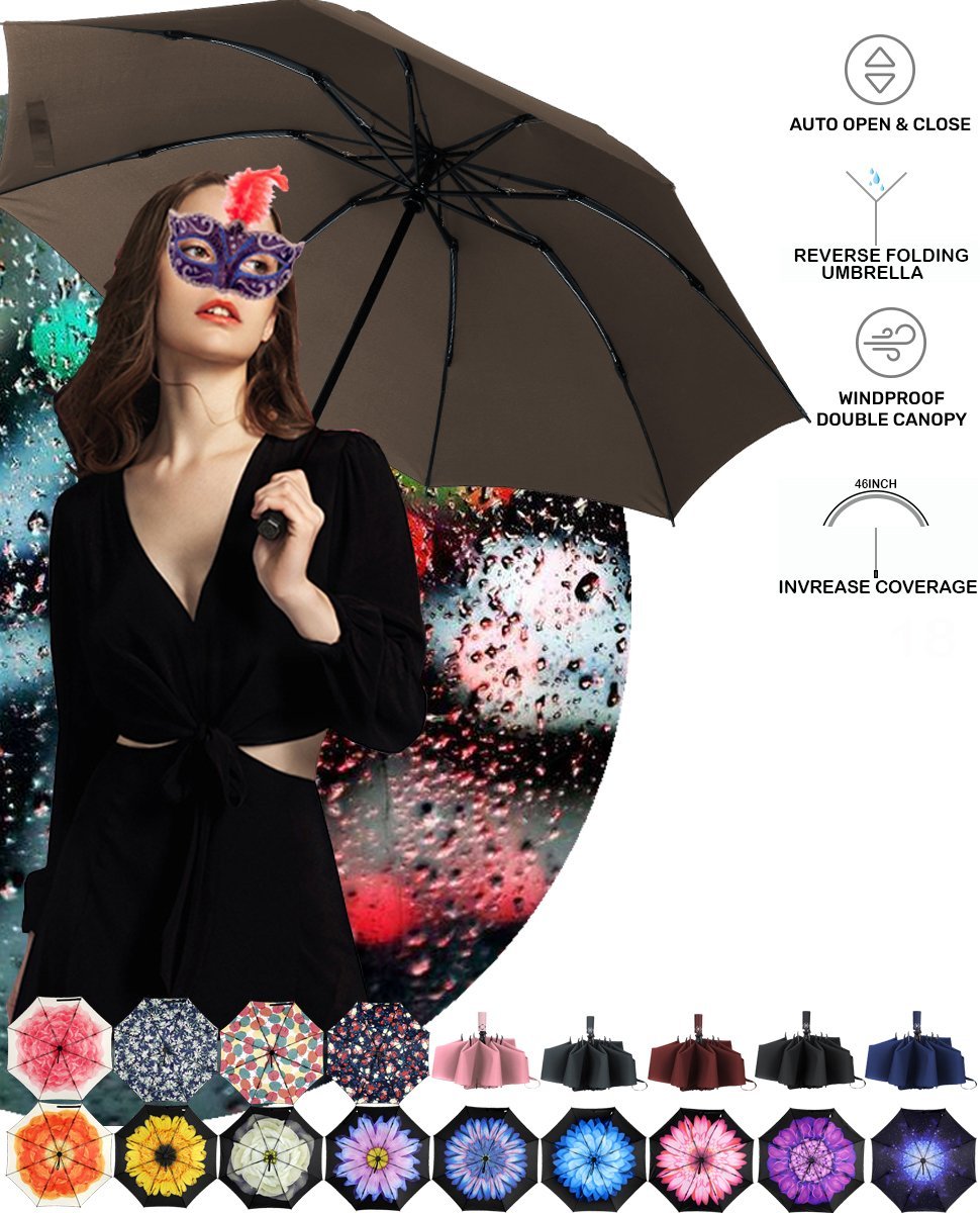 Umbrella Reverse Umbrella Windproof Compact Folding Large Size Auto open close 10 ribs - Brown