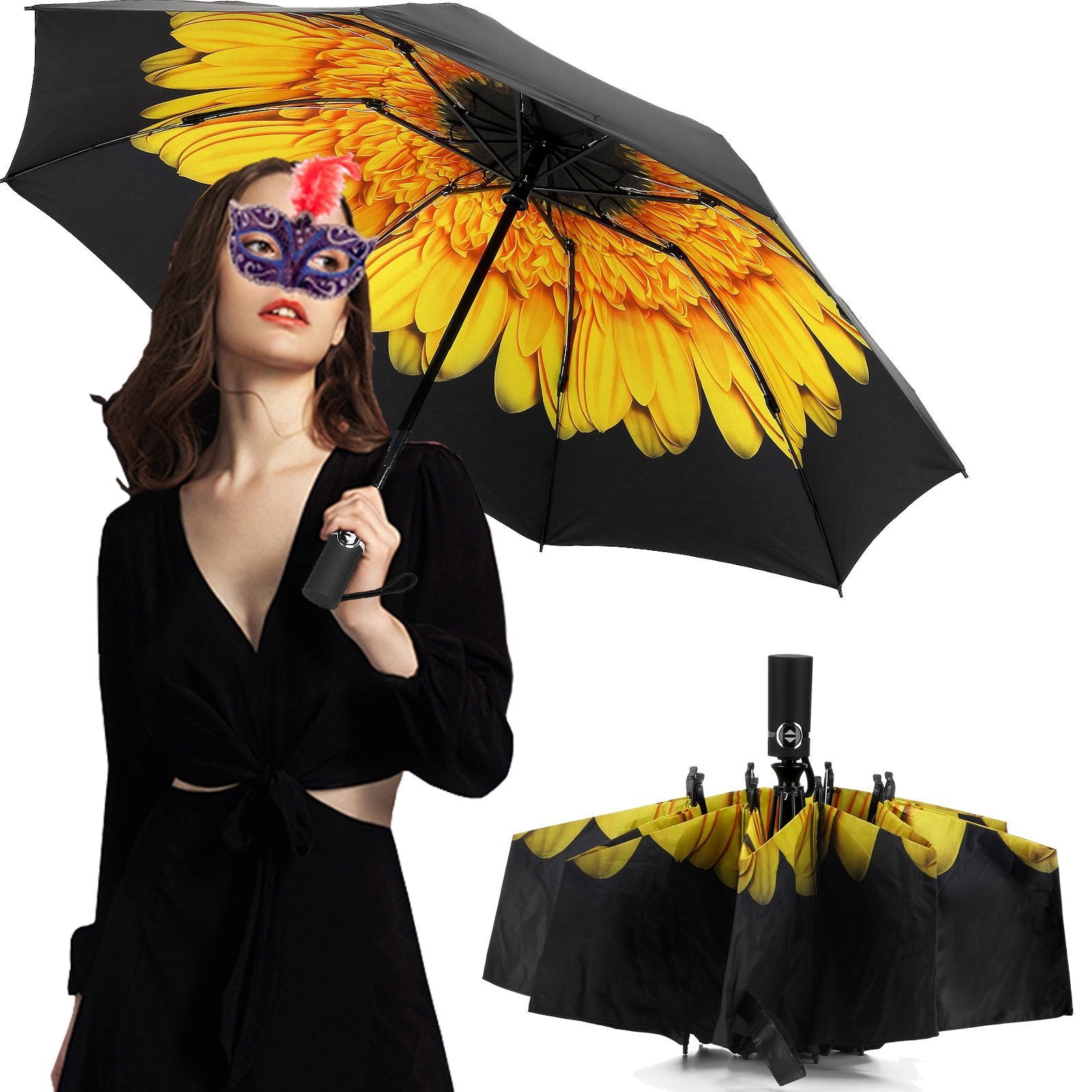 LANBRELLA Umbrella Reverse Travel Umbrellas Windproof Compact Folding - Sunflower